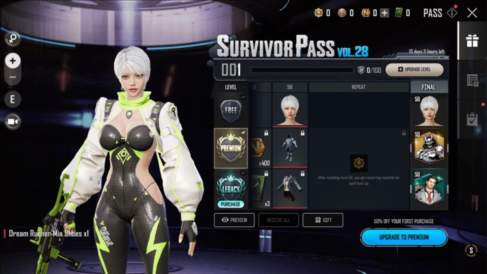 升级高级通行证能获取‘Jean’的服装套装,若购买高级Plus通行证,还能即刻得到更多奖励。