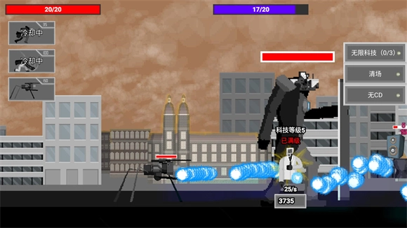 3、巨型马桶人登场之后,先派遣一些小兵去扛住它冲撞带来的伤害,接着积攒能量召唤泰坦音箱人;要是不派小兵抵挡伤害的话,泰坦音箱人很快就会被击败。