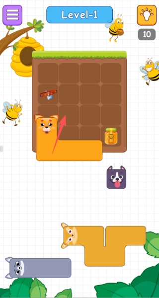 3、操作模式轻量化,仅需排列三只萌犬方块即可完成挑战,上手门槛低且关卡难度逐步提升。