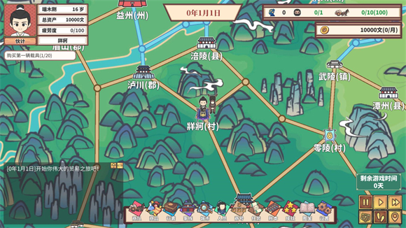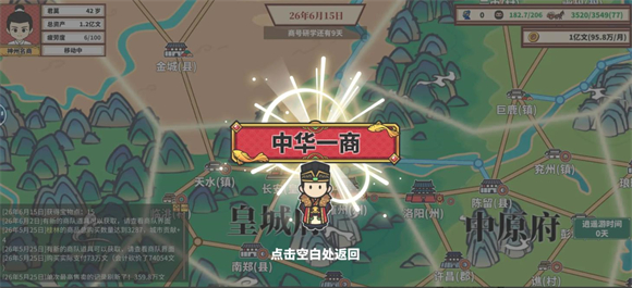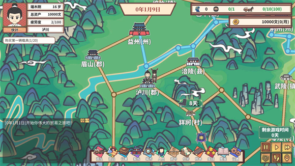 5、到了后期,钱攒够了,商队的宝物也都到手了,就可以不用再四处奔波,找个地方直接开启快进模式,之后只需要专注打理商号就行。