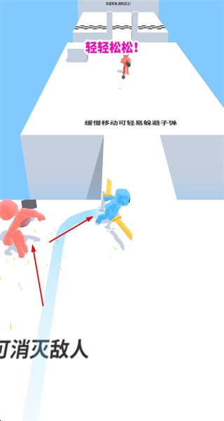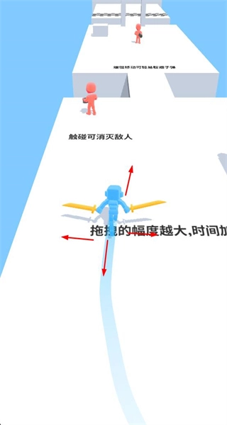 1、拖拽屏幕即可操控角色移动,拖拽的幅度越大,角色移动的时长就越久;只要触碰到敌人就能将其击败,从而推动关卡进度。