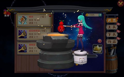 这款游戏装备的获取途径比较单一,点击主界面内“锻造”按钮,萌萌的二葫就会来帮你打造装备啦。游戏装备共有四个位置,分别是武器、上衣、下衣以及饰品。锻造装备需要装备图纸以及材料,这两种物品都可以通过副本掉落。另外,锻造商店内也出售装备材料,需要玩家花费金币进行购买。