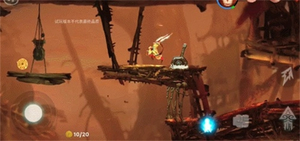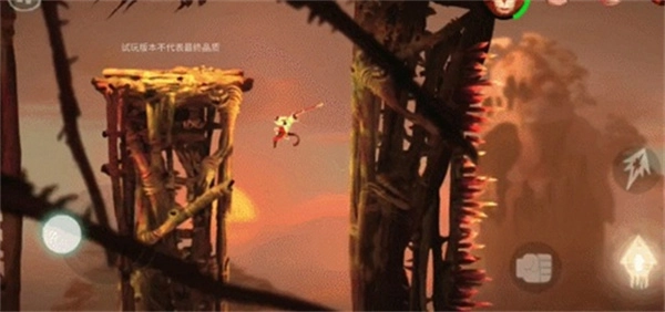 这是试玩版最后一章,刚开始就用悟空边跳,边打怪,还是比较简单的,跳上来后,小心喷的火,再往上跳会有喷火