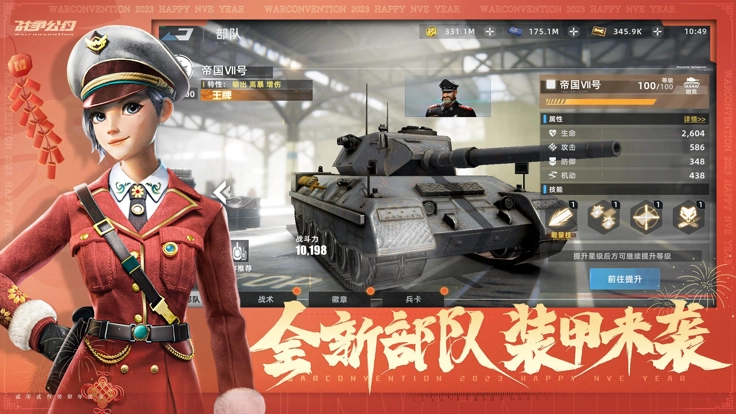 游戏内集结了坦克战车、火炮等各类经典军事装备,还融入了特种部队与黑科技军武元素,玩家能够依据自身喜好自由选择和搭配这些海量军备。
