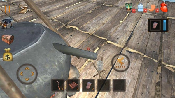 用钩子收集资源:木板、杂物、树叶、桶之类的物品。这些东西能给你的生存带来便利!