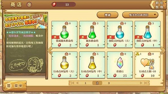 3、行动力与探险点:行动力和仓库问题一样让人头疼,总是不够用。游戏前期会发放不少恢复道具,到了后期掉落量就大幅减少,通常只有在完成特定任务或连续探索三个宝箱后才会获得;这些任务和宝箱给的一般都是加10点的小瓶,大瓶则需要去商店购买——虽然标价看似不贵,但实际消耗起来特别快,不推荐用石头兑换,石头最好还是攒着用来扩充仓库和解锁土地!