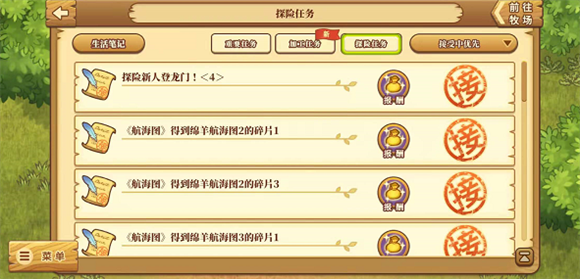 1、探索与地图:我发现不少玩家在探索时没有地图,航海图碎片的获取难度较大,需要接取任务并反复刷取材料,完成任务后才能获得碎片。建议大家可以把同类任务一次性接好,完成后记得查看任务列表重新领取,反复刷下去,总会集齐的!