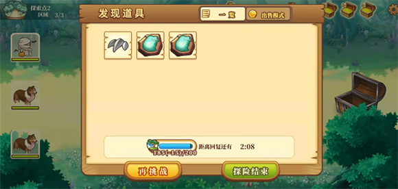 7、待所有区域都探索完毕,本次探险就正式结束啦,各位村长可以选择重新挑战,也能直接结束这次探险。探险玩法在绵羊村可是相当重要的存在,不管是完成任务还是加工道具,都会用到无人岛屿产出的材料。通过这次探险的详细说明,相信各位村长对探险玩法已经有了比较深入的认识,那就祝大家在绵羊村玩得愉快哟~