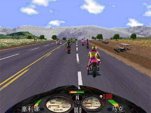 3、攻击对手:游戏中,玩家不仅可以竞速,还可以在比赛过程中使用棒球棍、铁链等武器攻击对手,增加了游戏的互动性和挑战性。