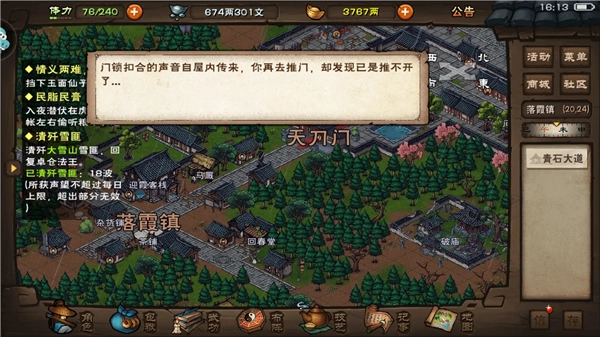 3、烟雨江湖轻快悦耳的BGM,轻松易于上手的操作,全新的武侠游戏体验。