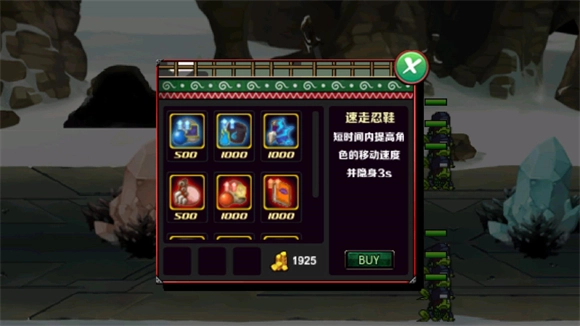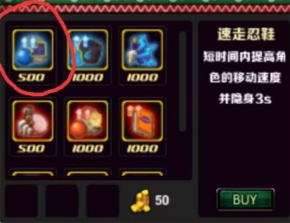 3、速走忍鞋,能提供3秒隐身与6秒加速效果,隐身状态下可规避多数技能,不管是用于赶路,还是调整位置释放奥义,都十分实用。