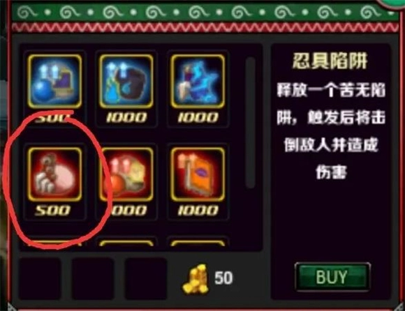 4、忍具陷阱,性价比就是关键,500块15秒冷却,能打出近2000伤害的范围攻击还附带击倒效果,就算角色阵亡也能触发,用“优秀”来评价它再合适不过。