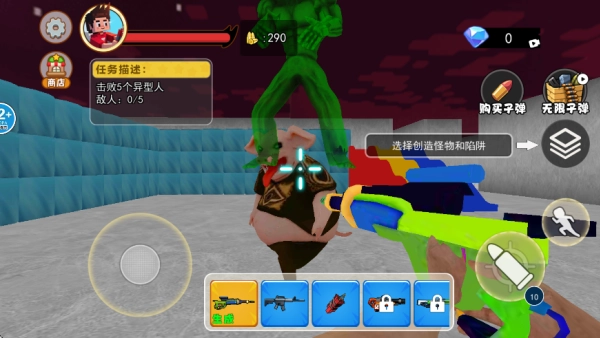 4.小编选择了梦核滑滑梯地图,进入之后玩家可以通过画面左上角的任务提示进行行动,成功击败五名异型即可获胜!