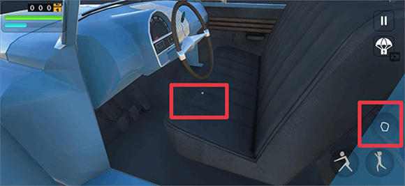4、开门后,继续将视角准心瞄准车内的座位,并再次点击拳头图标以进入车内并坐上驾驶座。