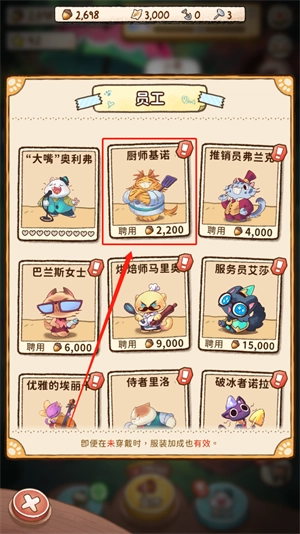 2、找到想要聘请的员工,如“厨师基诺”点击