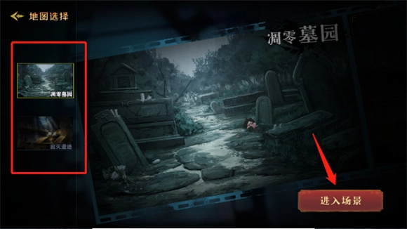 3、新手玩家一般有两张地图可选,分别是“凋零墓园”和“寂灭遗迹”。建议选择“凋零墓园”并点击进入该场景。
