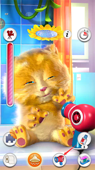 3、照顾金杰猫的每一个方面,例如刷牙、洗澡、吹毛、吃东西、上厕所、玩玩具等等,等你来玩。