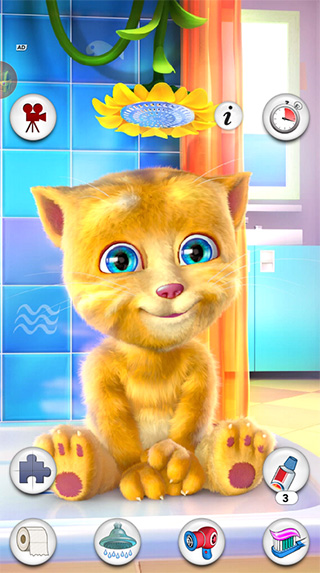 2、这是一款休闲模拟类游戏,在这里玩家可以和金杰猫一起玩拼图、可以给金杰猫洗澡、刷牙、拉纸巾、录视频;