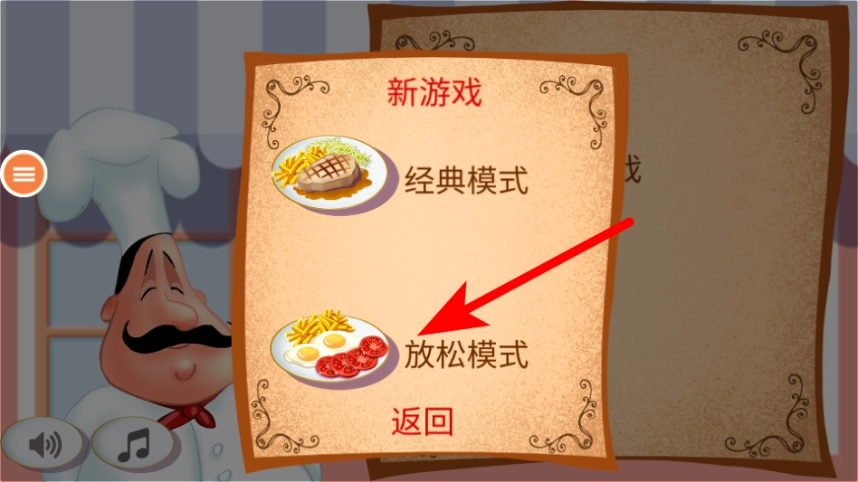 1、在厨房模拟器的模式选择页,点击放松模式选项,进入该模式的烹饪关卡。