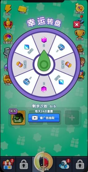 每日观看6次广告后,即可参与幸运转盘抽奖,有机会获得电池、水晶、能量石、宝箱等奖励。