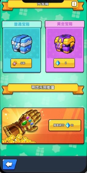 在宝箱页面,你可以消耗电池或水晶来抽取更高级别的英雄或宝石碎片。