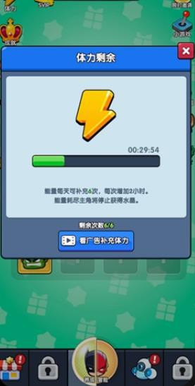进入游戏,体力是至关重要的。通过观看六次广告补充体力,就能产出电池,而电池可用于兑换水晶。