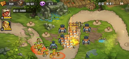 第三波:配置一座二级火炮。这波主要是兽人勇士,地精医生不多,第二部队的剑兵有牧师的支援,能够轻松地消灭这波怪物。