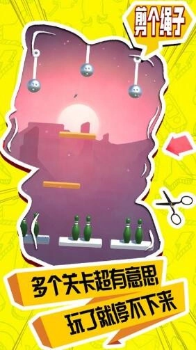 在《剪个绳子》里,你得通过巧妙各关卡的不同谜题来推进,这非常考验你的脑力与思维能力。比如要思考什么样的角度最合适,怎样才能一次性击倒多个瓶子。脑洞大开的游戏关卡,每一关都能为你带来极致的享受体验;解压治愈的游戏氛围,则能帮你摆脱一天的烦恼束缚,开启让人欲罢不能的游戏时光,把所有烦恼都抛到九霄云外吧。