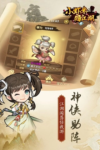 在《小虾米闯江湖》的世界里,有着一套独立且宏大的世界观架构,剧情故事也相当丰富饱满。江湖之中多个门派各踞一方,玩家可以挑选心仪的门派加入,潜心修习武功招式,还能通过购置装备来增强自身的战斗力。当实力积累到足够水平时,便可选择离开师门,开启独属于自己的江湖闯荡之旅。