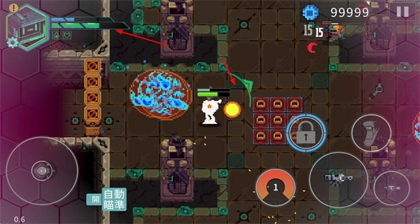 1、在关卡里操控角色移动并射击敌方单位,借助自动瞄准功能辅助攻击,既能高效消灭敌人,也能推进关卡进度。