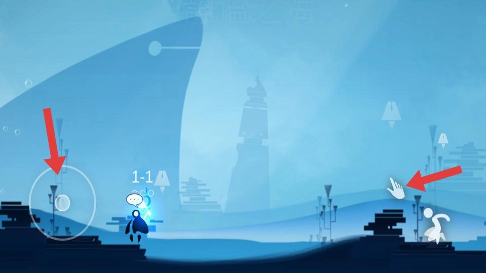 进入第一关后,你可以用左边的虚拟摇杆来控制角色移动,右边的手势区域则能完成互动操作,现在就开始关卡挑战吧。