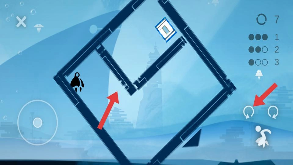在迷宫场景中,通过右侧的旋转按钮调整迷宫的朝向,操控角色在迷宫里移动,找到前往目标位置的路线。