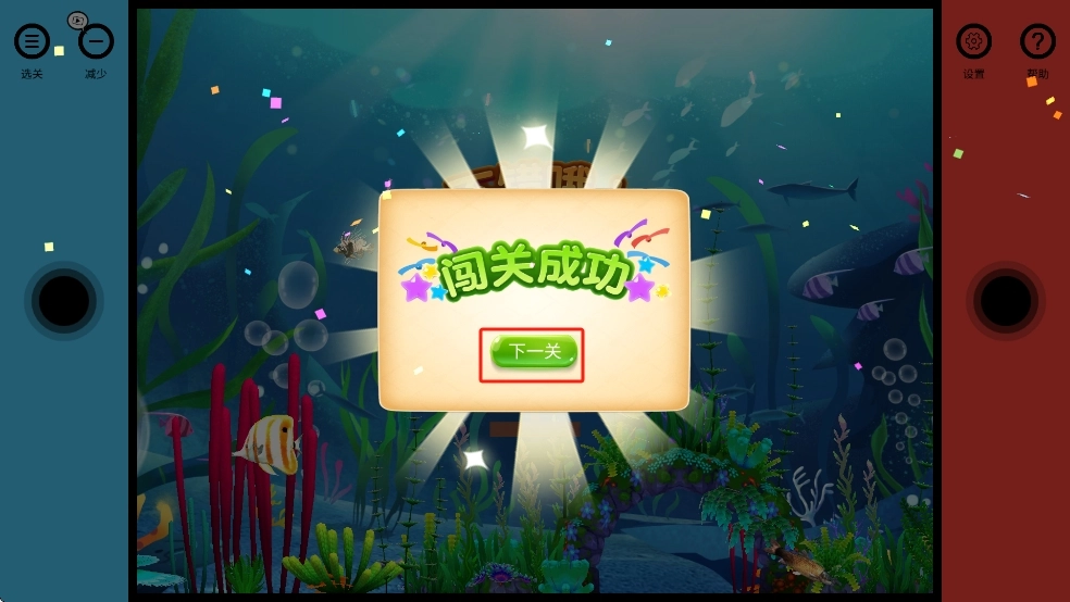 闯关成功后就能解锁更多其他关卡,点击绿色的下一关按钮,就能进入后续的水下套环关卡。