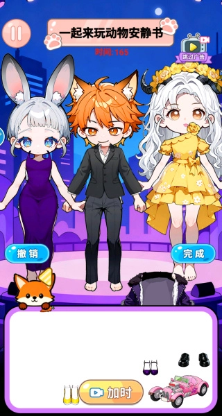 2、换装过程能锻炼色彩搭配能力和审美水平,玩家只需拖动各类贴纸完成搭配,之后还能保存自己的作品并制作成一本专属的安静书。