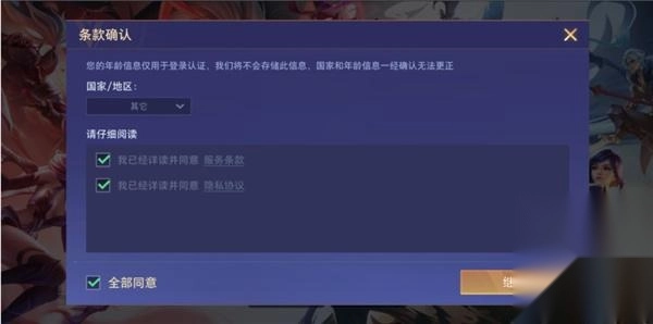4、之后选择国家/地区、勾选协议并点击继续;