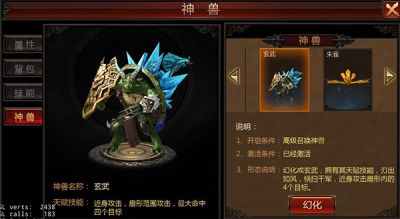 道士的召唤神兽技能等级越高,能够解锁的神兽形象就越多。