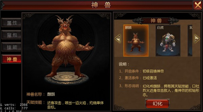中级召唤神兽:麒麟形态、白虎形态