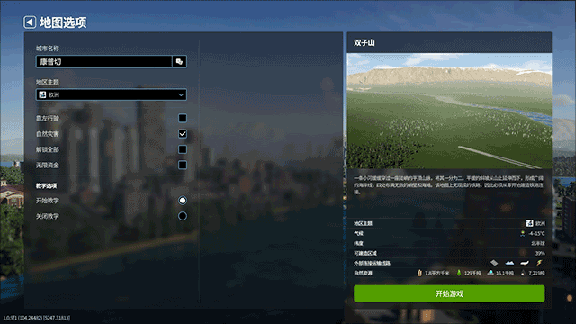 5、接着在此处对即将创建的地图进行细节调整,调整完毕后点击开始游戏就能进入游玩环节。