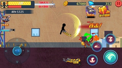 在火柴人突击格斗最新版本里,你得时刻留意避开敌人的攻击,同时发起反击将他们消灭。街道上还会偶尔刷新出各类强力道具供玩家拾取使用,像黄金战刀、黄金AK、黄金沙鹰之类的,这些武器能显著增强你的战斗能力,让你更轻松地战胜敌人。