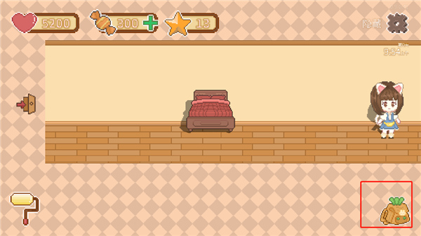 3、接着点击进入自己的新家,感觉有些空旷,我们点击背包,准备开始装修新家。