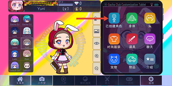 1、在游戏界面中你可以设计一个你喜欢的角色,点击已创建的角色