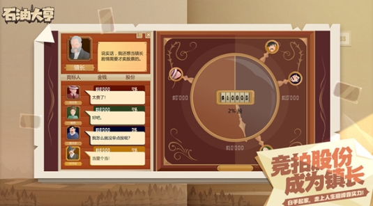 游戏开始时,每个人都能分到一块地,大家得靠自己的能力开采石油来获取收益。谁赚的钱越多,谁就能掌握更大的话语权,还能抢占更多有油的地块,在起步阶段就占据优势!不过要注意,参与股份竞拍可不是光有钱就行的,你永远猜不到对手会在哪个时刻出手拍下股份,这其中充满了刺激和紧张感!究竟谁能坚持到最后,成为名副其实的石油大亨呢?