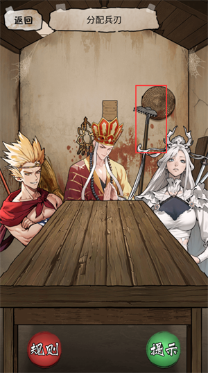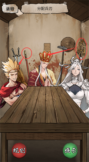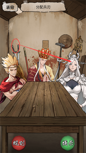 6、向上滑动拔出插在草垛上的双股剑,将双股剑拖递给白骨精