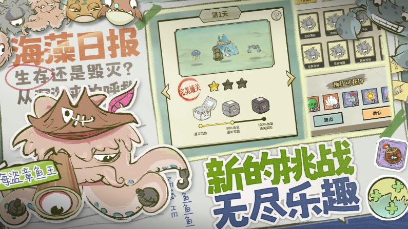 炮塔升级:玩家可以收集资源,升级强化炮塔,提高防御能力,抵御海洋生物的入侵。
