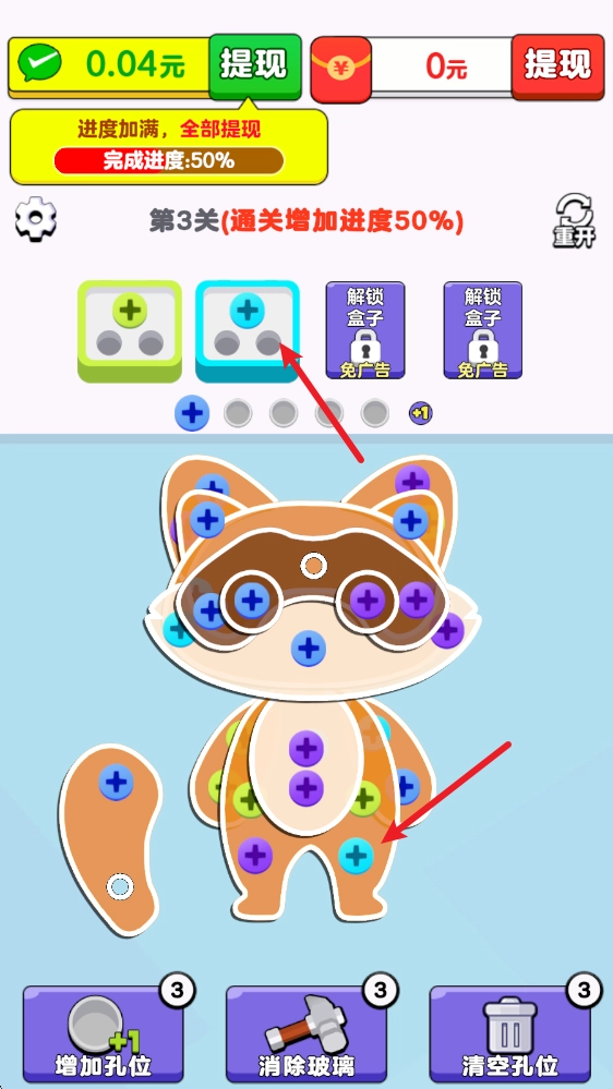 成功把所有螺丝都拆除完毕后,就能顺利通过关卡并领取奖励了。