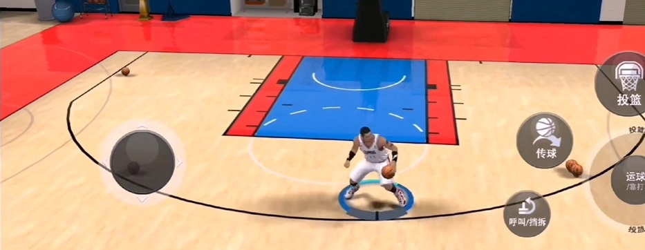 运球键从持球手方向向左上或者向右上滑动半圈。