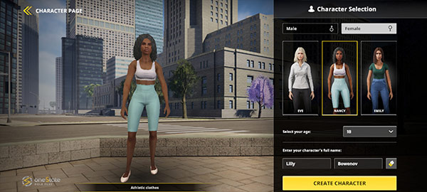 5、进入游戏前需要选择游戏角色,可选择性别、年龄等,选好后点击“create”完成创建。
