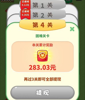 这个平台是能提现的,新用户只要顺利通过第一关,就能提取0.1元;闯过第二关,可以提现0.2元;不过到了第三关,难度就会大一些了。