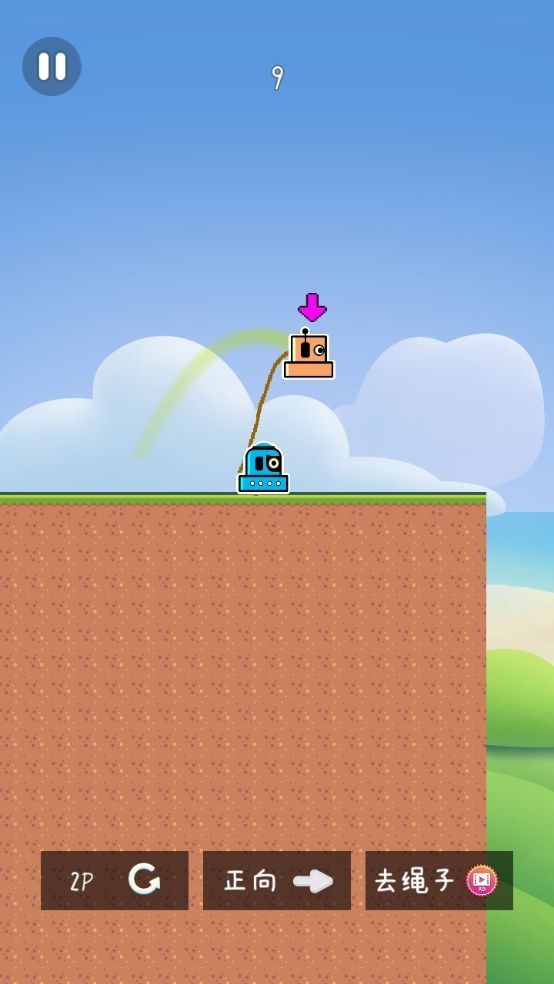 1、玩家需要控制两个小人,蓝色和橙色小人,交替跳跃到达终点。