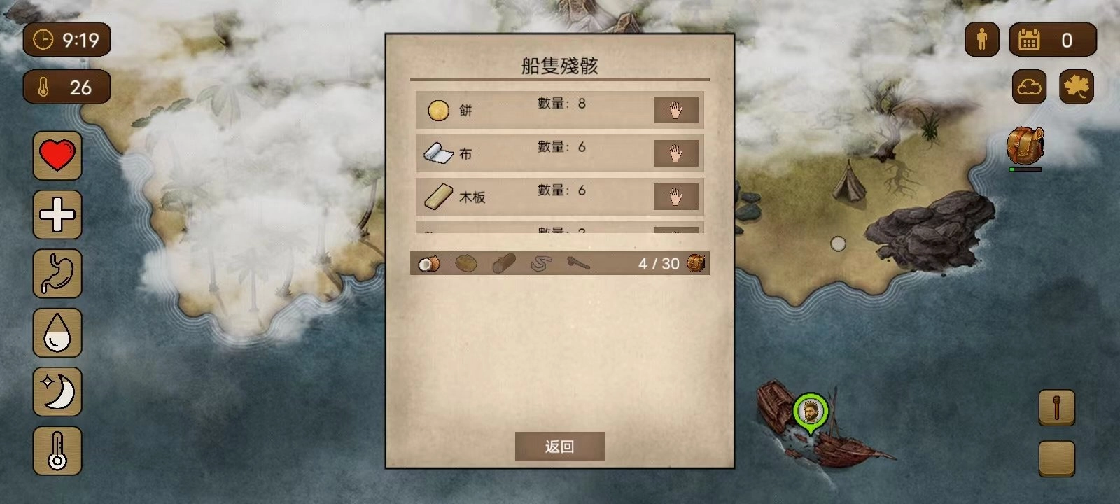 6、点击右下角的右向图标进入大地图,之后玩家可点击船只残骸进行探索,并在残骸处拾取物品。